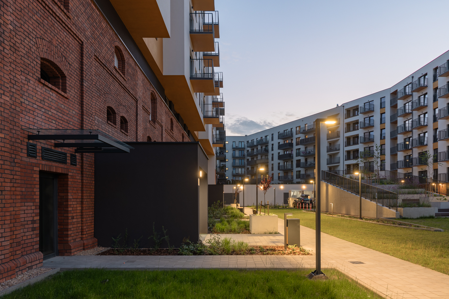 Dzięki wykonanej przez nas rewitalizacji ceglanych elewacji i sklepień krzyżowych, wyeksponowaliśmy unikalny, historyczny kontekst tej części miasta i zmieniliśmy zrujnowane stajnie w historyczny element nowoczesnego osiedla.